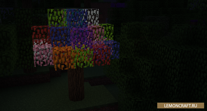 С модом Chromatic Foliage вы сможете разукрасить свой мир во все цвета радуги одним нажатием кнопки. После установки мода вы сможете, используя различные красители, раскрашивать блоки травы и листьев. Теперь вы сможете окрасить листву в синий цвет и пусть только кто то скажет, что это не китайский клен ). Блоки, которые уже покрашены, вы сможете перекрсить.